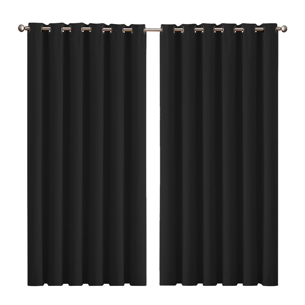 2x Blockout Curtains Panels 3 Layers Black