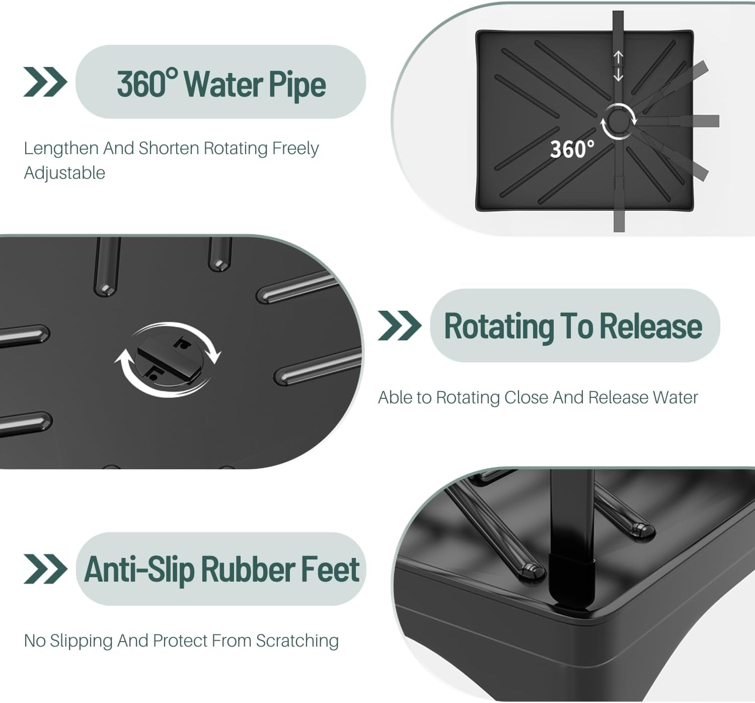 - BUILT-IN DRAINBOARD WITH SWIVEL SPOUT: Includes an auto-drain tray and 360� rotating spout to channel excess water directly into the sink, keeping your kitchen counter clean and dry at all times.