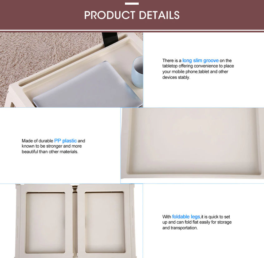 - FOLDING LAPTOP TABLE: this portable laptop desk can be folded into a compact size after being used, saving you space to store it. The U-shaped reinforced legs of the mini laptop table has an anti-slip design, which avoid your laptop from falling accidentally.