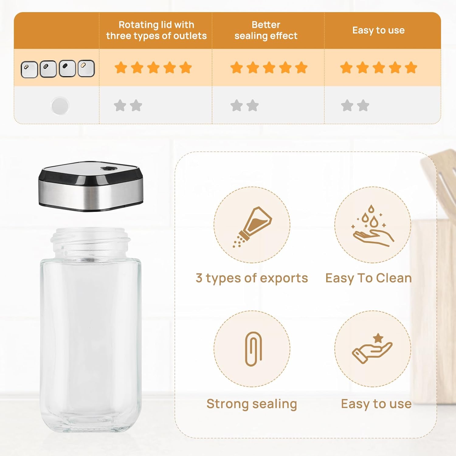 - 20 PREMIUM GLASS JARS INCLUDED: Comes with 20 refillable glass spice jars with metal lids�perfect for storing a wide variety of herbs, salts, and seasonings. Transparent bottles make identification quick and easy.