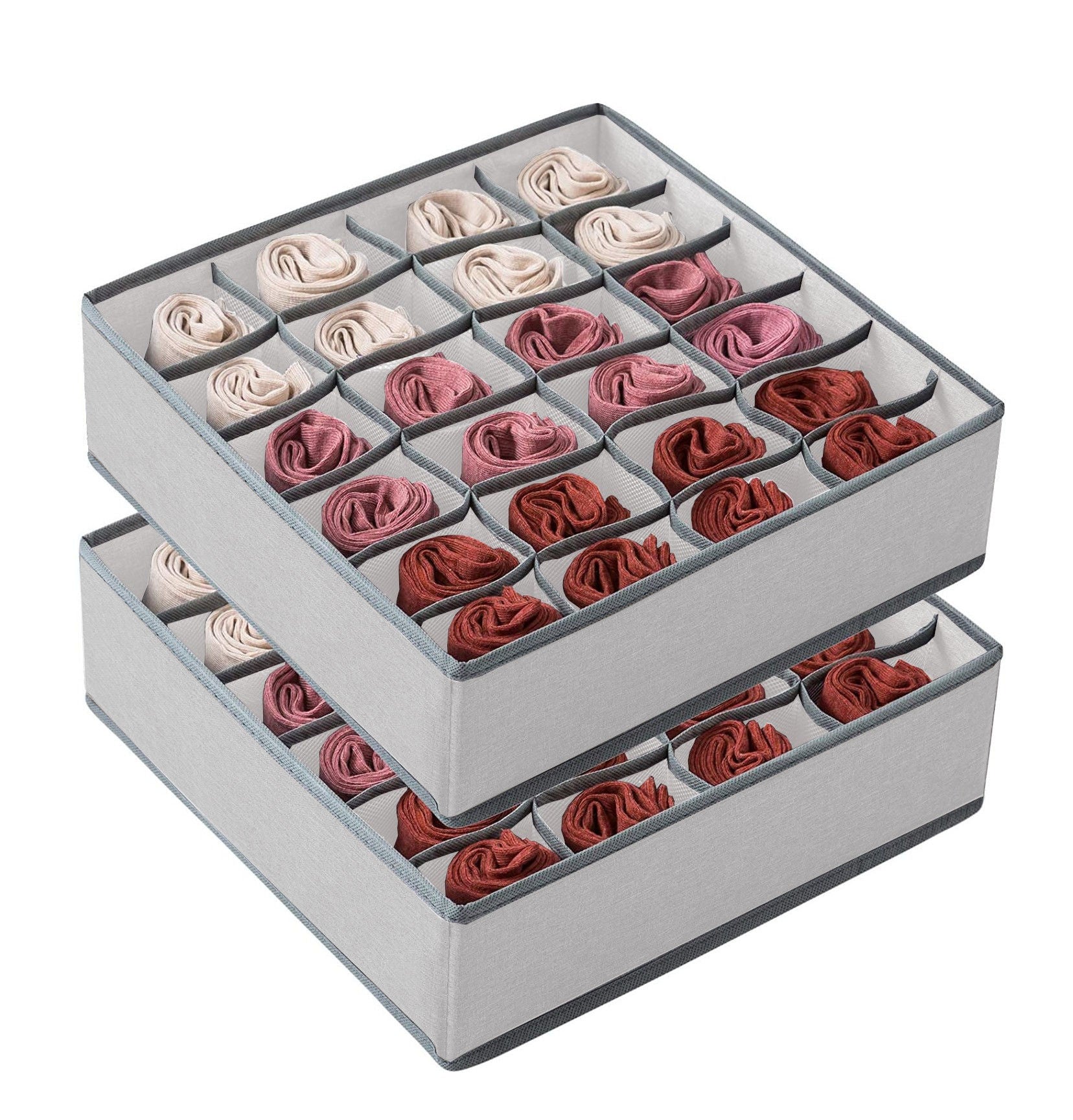 CARLA HOME Set of 2 Fabric Drawer Organizer Divider Storage Boxes for Storing Socks, Underwear, Ties, Scarves (Grey)