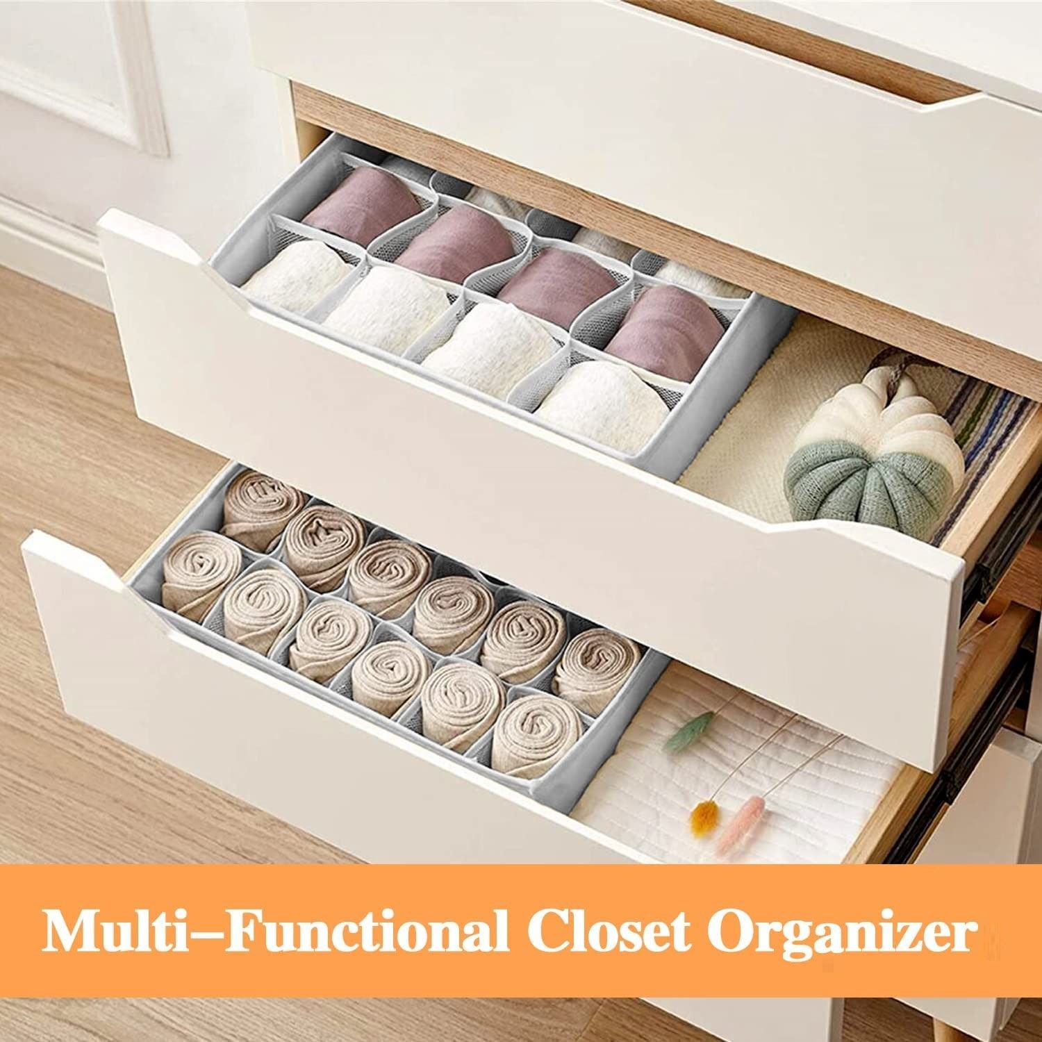 - 2 PACK: It comes with 2 pack of closet dividers, you can use one as wardrobe organiser for storing socks, underwear, bras, handkerchiefs and thin scarves, and the other one for dresser drawers to store jewellery, nail polish, lipstick,other bits and bobs etc. Make sure your drawer is no longer chaotic, and become tidier and neater.