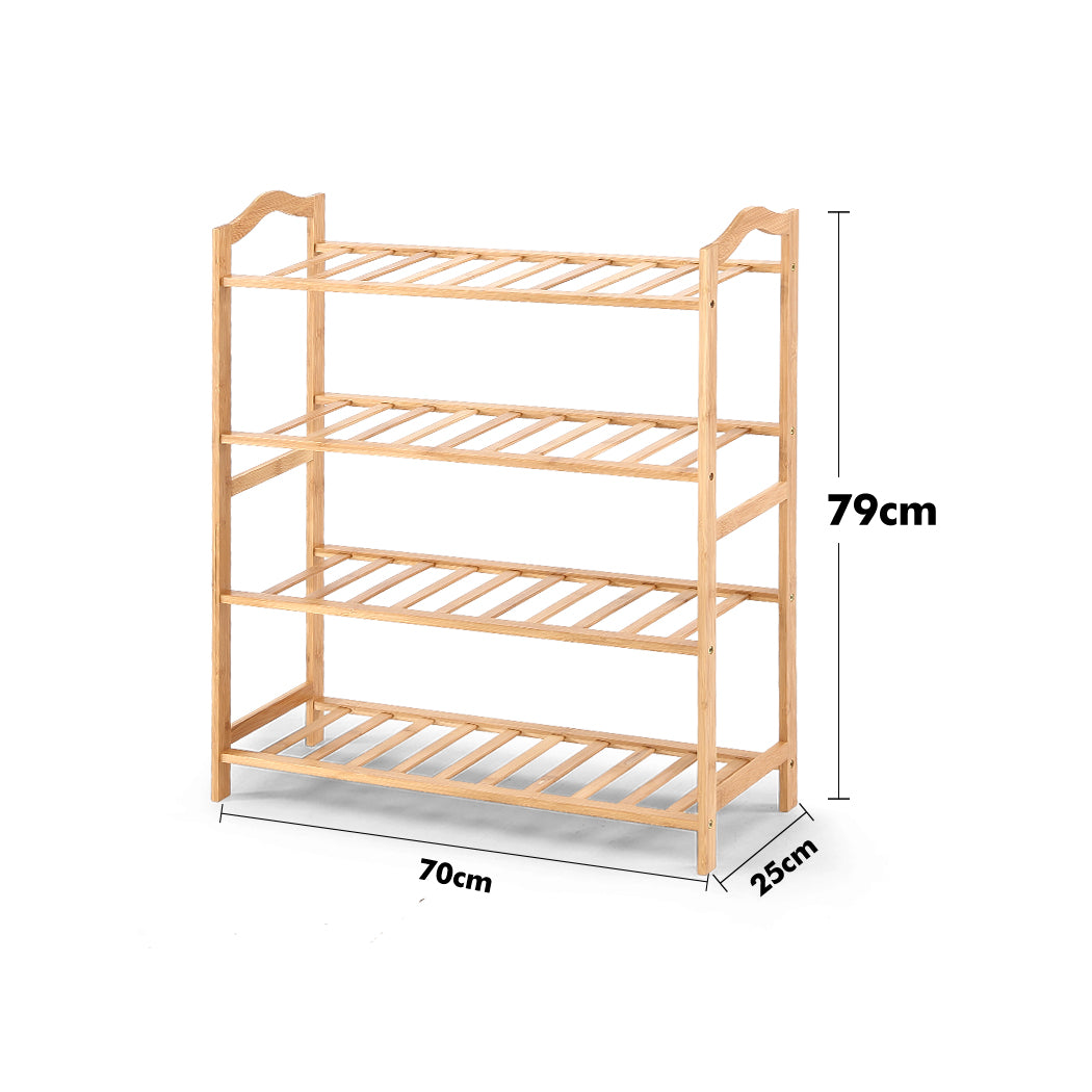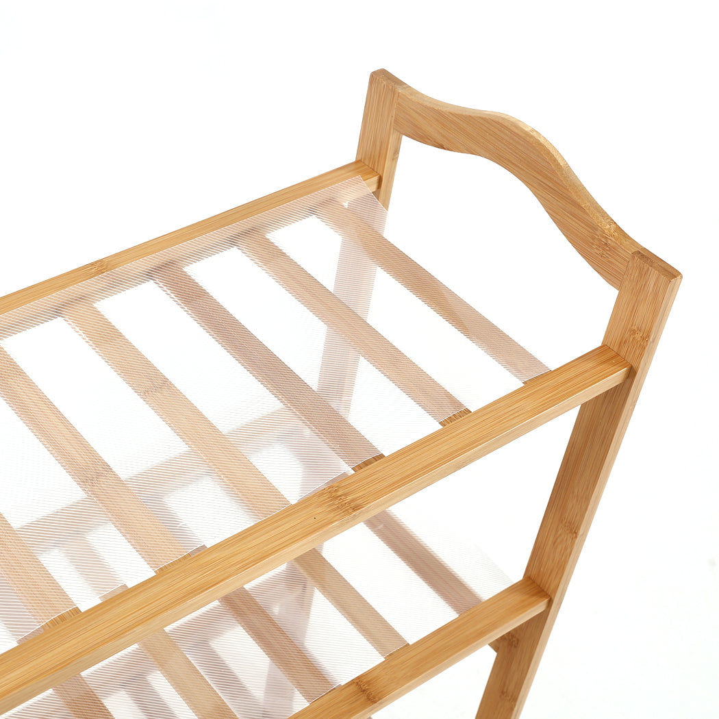 Our 100% Natural bamboo shoe rack is eco-friendly, non-toxic and tough, with countersunk screws and rounded. This bamboo shoe rack will last a lot longer than plastic one, looks much nicer and gives your home a modern look. It is 70cm Width, longer than other seller. Two convenient integrated handles facilitate easy carrying while the open design allows for good ventilation for your footwear wherever you place it. In the hallway, balcony, patio, bedroom or children�s room, the Bamboo Shoe Rack will certainly not be deemed out of character with your home d�cor. PVC MAT in each tier prevent dust from falling off your shoes.