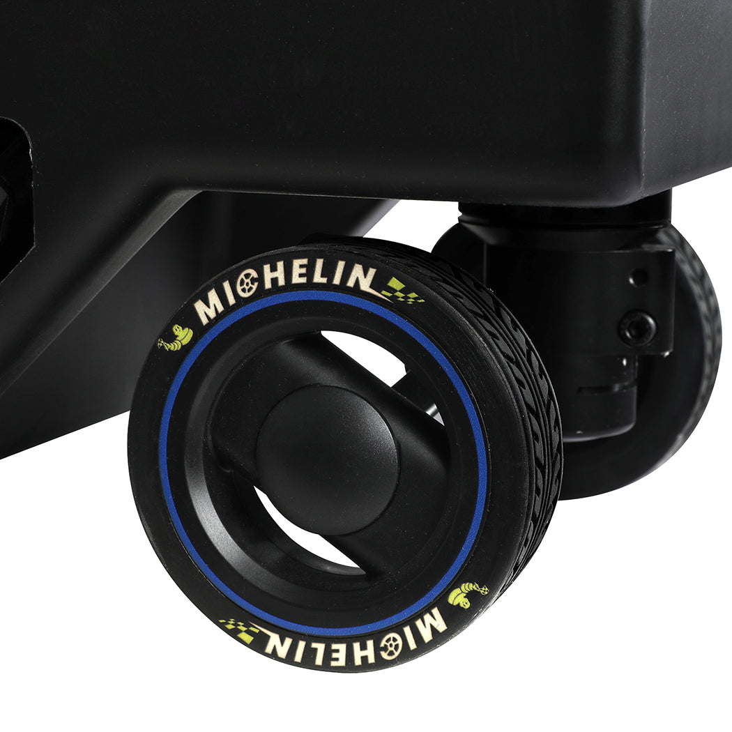 Travel in style the easy way. Sit on your smart luggage and let the powerful motor move you along. Breeze through the airport in a leisurely way. With a maximum speed of 16 km/h you feel safe and relaxed. Eliminate noisy wheels. Your new bag has high quality rubber tyres for a quiet ride.
